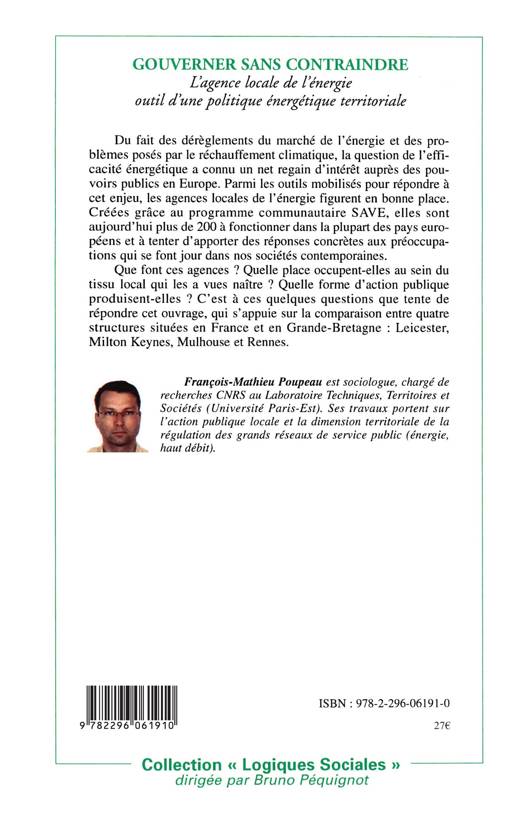 Que font les agences locales de l'énergie créées par le programme européen SAVE ? Quelle place occupent-elles au sein du tissu local qui les a vu naître ? Quelle forme d'action publique produisent-elles ? Pour répondre à ces questions, l'ouvrage s'appuie sur la comparaison entre quatre structures : Leicester, Milton Keynes, Mulhouse et Rennes.