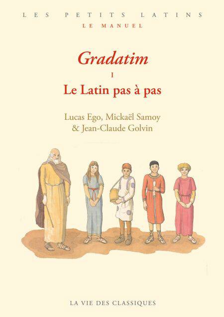 Adapté aux programmes, ajusté au volume horaire imposé en classe et destiné à toute personne désireuse de s’initier ou de rafraîchir son latin en plus de ses activités quotidiennes, Gradatim permet au débutant d’avancer pas à pas, seul ou accompagné d’un professeur, dans la connaissance de la langue et de la culture latines. Aux côtés du magister Lucius et de Publius, Claudia, Titus et Aemilia, ses quatre discipuli au caractère bien trempé, plonge dans la vie quotidienne romaine grâce aux splendides illustrations de Jean-Claude Golvin et découvre les origines de Rome à travers des textes en latin qui suivent ta progression. Avec Gradatim, festina lente : hâte-toi lentement !
