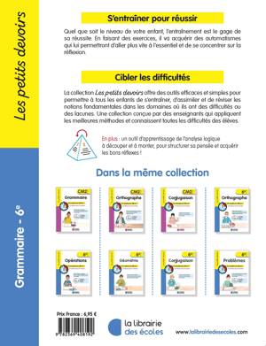 Un entraînement efficace est un gage de réussite : grâce aux séances minutées des Petits devoirs, l'objectif de chaque série d'exercices est clairement formulé, et la progression est conçue par des enseignants expérimentés pour qu'il soit atteint quel que soit le niveau de votre enfant. Pour chaque notion, la série d'exercices est précédée d'une leçon brève et claire. Tous les exercices sont corrigés. Le cahier propose des mémos (conjugaisons, tables de multiplication...) très pratiques sur le verso de la couverture.