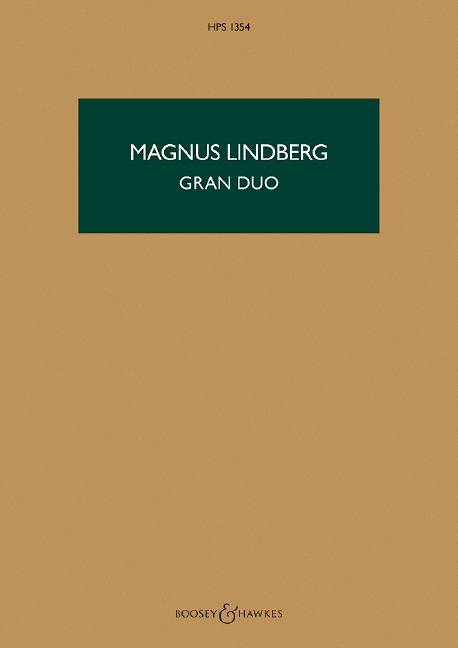 (Boosey & Hawkes Scores/Books). New edition of this 1999-2000 dialogue between the two orchestral families of woodwind and brass, each with their respective material. Their initial characters, equating to the poetic stereotypes of 'masculine' and 'feminine', become progressively blurred and androgynised during the course of the work as larger sound masses give way to chamber music-style sub-groupings and individual instrumental solos. The wind-only scoring of the work posed various compositional challenges. The composer has stated that 'if no-one is playing, nothing is heard', so the illusion of sustained sound has to be created without the support of a string section. Similarly, clear attack and accentuation have to be carefully sculpted, as there is no percussion to help articulation. In the wordsof the London Times, "Lindberg, a master of orchestral sound, has chosen virtually the same forces as Stravinsky in his Symphonies of Wind Instruments, and with its five connected movements Gran Duo is a symphony in the modern sense...a darkly brooding yet peaceful work that reflects something of a unique landscape."