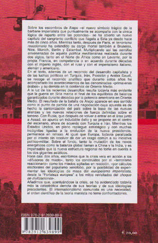 Sobre los escombros de Alepo -el nuevo símbolo trágico de la barbarie imperialista que puntualmente se acompaña con la cínica lógica de reparto entre las potencias- se ha abierto un nuevo capítulo del sangriento conflicto que flagela a Siria ya desde hace más de cinco años. Mientras tanto, después de París, el terrorismo reaccionario ha extendido su carga mortal también a Bruselas, Niza, Munich, Berlín y Estambul. Multiplicando así las semillas envenenadas de aquella política mediterránea realizada durante dos siglos, tanto en el Norte de África como en Levante, por la propia Francia, en competencia o en acuerdo durante décadas con el imperio inglés, con el ruso y con el imperialismo italiano, alemán y americano.