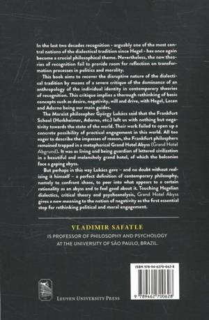 But perhaps in this way Lukács gave - and no doubt without realizing it himself - a perfect definition of contemporary philosophy, namely to confront chaos, to peer into what appears to a certain rationality as an abyss and to feel good about it. Touching Hegelian dialectics, critical theory and psychoanalysis, Grand Hotel Abyss gives a new meaning to the notion of negativity as the first essential step for rethinking political and moral engagement.