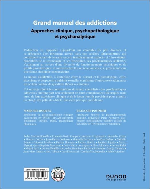 Les étudiants en psychologie et en psychiatrie sont de plus en plus nombreux à s’orienter vers l’addictologie, et plus largement vers l’étude et la prise en charge des addictions. Cet engouement reflète les interrogations théorico-cliniques autour de ce trouble, la fréquence des conduites addictives dans nos sociétés post-modernes et l’apparition de nouvelles addictions, qui constituent autant de terrains encore insuffisamment explorés et à investiguer. Cet ouvrage réunit les recherches les plus récentes en psychopathologie clinique psychanalytique principalement sur les différentes addictions, avec ou sans substance, à tous les âges de la vie. Les chapitres, rédigés selon la même trame, permettent de faire un point sur les publications scientifiques et l’avancement des connaissances sur un type d’addiction en particulier ; illustrés par une vignette clinique, ils proposent aussi une prise en charge adaptée à l'addiction traitée.
