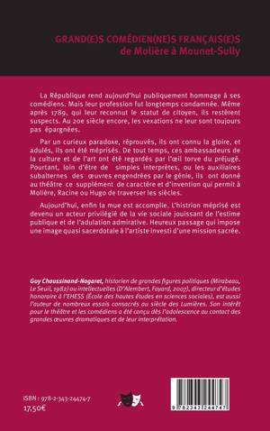La République rend aujourd'hui publiquement hommage à ses comédiens. Mais leur profession fut longtemps condamnée. Même après 1789, qui leur reconnut le statut de citoyen, ils restèrent suspects. Au 20e siècle encore, les vexations ne leur sont toujours pas épargnées. Par un curieux paradoxe, réprouvés, ils ont connu la gloire, et adulés, ils ont été méprisés. De tout temps, ces ambassadeurs de la culture et de l'art ont été regardés par l'oeil torve du préjugé. Pourtant, loin d'être de simples interprètes, ou les auxiliaires subalternes des uvres engendrées par le génie, ils ont donné au théâtre ce supplément de caractère et d'invention qui permit à Molière, Racine ou Hugo de traverser les siècles. Aujourd'hui, enfin la mue est accomplie. L'histrion méprisé est devenu un acteur privilégié de la vie sociale jouissant de l'estime publique et de l'adulation admirative. Heureux passage qui impose une image quasi sacerdotale à l'artiste investi d'une mission sacrée.