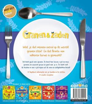 Dit boek gaat over granen. Je leest hoe tarwe, rijst en mais groeien, en waarom graan zo goed voor je is. Je duikt zelf de keuken in voor rijst-repen uit de oven en zelfgebakken brood!
