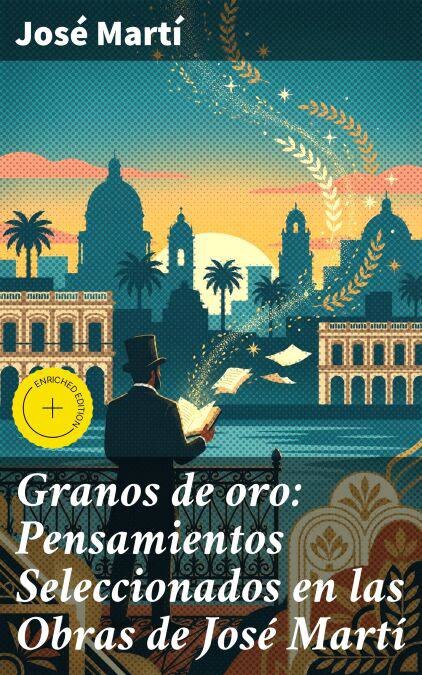 "Granos de oro: Pensamientos Seleccionados en las Obras de José Martí" es una antología que reúne lo más profundo del pensamiento del apóstol de la independencia cubana. Este libro abarca una variedad de temas que van desde la justicia social hasta la identidad cultural, reflejando el estilo lírico y elocuente que caracterizan a Martí. La obra, enmarcada en el contexto del modernismo latinoamericano, destaca por su lenguaje rico y simbólico, fusionando la prosa poética con la pertinencia en la reflexión social y política de su tiempo. Cada selección ofrece una ventana al espíritu y la ética que guiaron a Martí en su lucha por la libertad de Cuba. José Martí (1853-1895), figura central del nacionalismo cubano y del modernismo hispanoamericano, es conocido por su compromiso con la independencia y el pensamiento revolucionario. Su vida estuvo marcada por el exilio y la lucha constante por sus ideales, lo que lo llevó a escribir con fervor sobre la necesidad de una identidad nacional sólida y una justicia social en América Latina. Estas experiencias personales informaron su capacidad para conectar profundamente con las esperanzas y aspiraciones de un pueblo ansioso de libertad. Recomiendo encarecidamente "Granos de oro" a aquellos que buscan comprender no solo la vida de Martí, sino también los ideales que forjaron su legado. Esta obra es indispensable para estudiantes de literatura y ciencias sociales, así como para cualquier lector interesado en la historia de Cuba y la construcción de una identidad cultural, ya que ofrece una visión concisa y reflexiva de las ideas que marcaron un hito en la historia de América Latina.