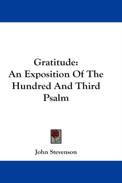 ""Gratitude: An Exposition Of The Hundred And Third Psalm"" is a book written by John Stevenson. The book is an in-depth exploration of the 103rd Psalm, which is a hymn of thanksgiving and praise to God. The author provides a detailed analysis of each verse of the Psalm, examining the themes of God's mercy, forgiveness, and love towards His people. The book also includes insights into the historical and cultural context of the Psalm, as well as practical applications for readers to apply to their own lives. Overall, ""Gratitude"" is a thoughtful and inspiring guide to cultivating a spirit of thankfulness and appreciation towards God.This scarce antiquarian book is a facsimile reprint of the old original and may contain some imperfections such as library marks and notations. Because we believe this work is culturally important, we have made it available as part of our commitment for protecting, preserving, and promoting the world's literature in affordable, high quality, modern editions, that are true to their original work.
