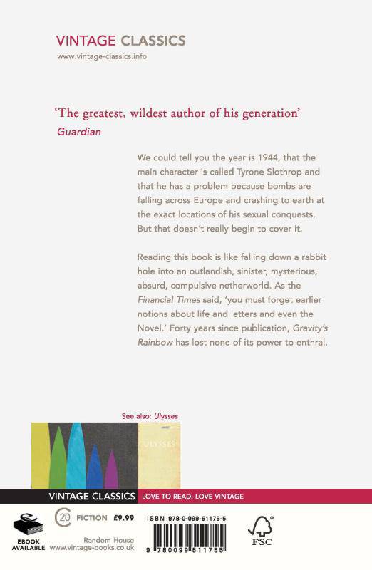 We could tell you the year is 1944, that the main character is called Tyrone Slothrop and that he has a problem because bombs are falling across Europe and crashing to earth at the exact locations of his sexual conquests. But that doesn't really begin to cover it.
