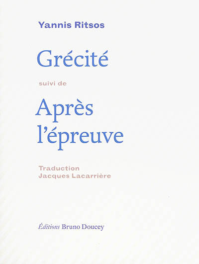 "Dans ce pays, le ciel ne diminue jamais un seul instant la flamme de nos yeux Dans ce pays, le soleil nous aide à soulever le poids De pierre que nous avons toujours sur nos épaules Et les tuiles se brisent net sous le coup de genou de midi Les hommes glissent devant leur ombre Comme les dauphins devant les caïques de Skiathos Et leur ombre devient un aigle teignant ses ailes dans les feux du couchant"