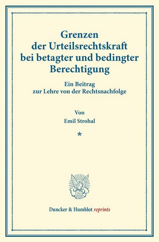 Im Rahmen des Projekts "Duncker & Humblot reprints" heben wir Schätze aus dem Programm der ersten rund 150 Jahre unserer Verlagsgeschichte, von der Gründung 1798 bis zum Ende des Zweiten Weltkriegs 1945. Lange vergriffene Klassiker und Fundstücke aus den Bereichen Rechts- und Staatswissenschaften, Wirtschafts- und Sozialwissenschaften, Geschichte, Philosophie und Literaturwissenschaft werden nach langer Zeit wieder verfügbar gemacht.