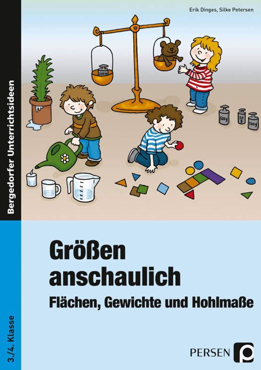 Mit anschaulichen Beispielen aus dem alltäglichen Leben werden die Größen Gewichte, Flächen und Hohlmaße handlungsorientiert thematisiert. So werden Schulmaterialien wie Farbkästen geschätzt, gewogen, gemessen, verglichen und für Rechnungen verwendet, Gefäße und ihre Inhaltsmengen bestimmt, Waagen und ihre Einsatzzwecke zugeordnet und vieles mehr. Kleine Tests zu den Größenbereichen erleichtern die abschließende Lernzielüberprüfung.
