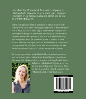 Met dit boek zijn kamerplanten niet alleen decoratie, maar levende kamergenoten die de juiste verzorging nodig hebben. In de hoofdstukken Nice to Know en Need to Know krijg je praktische tips en advies over bijvoorbeeld water geven, temperatuur en voeding. In Meet the Plants zijn ruim 200 soorten afgebeeld en lees je in de plantenbeschrijving alles wat je moet weten om ze mooi en gezond te houden. Je komt bekende sterke soorten tegen, maar ook de allernieuwste kamerplanten zijn opgenomen. Dit boek geeft je alle informatie die nodig is om met succes binnenshuis te tuinieren, inclusief inspirerende stylingtips.
