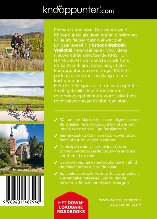 Fietsen is genieten. Dat weten we bij Knooppunter als geen ander. Onderweg wil je als fietser best wel wat zien. En daar speelt dit Groot Fietsboek Wallonië helemaal op in. Voor deze nieuwe editie selecteerde KRISTIEN HANSEBOUT de mooiste rondritten: 50 kant-en-klare routes langs fietsknooppunten en over ‘trage’ RAVeLpaden, telkens met een lang en een kort parcours.