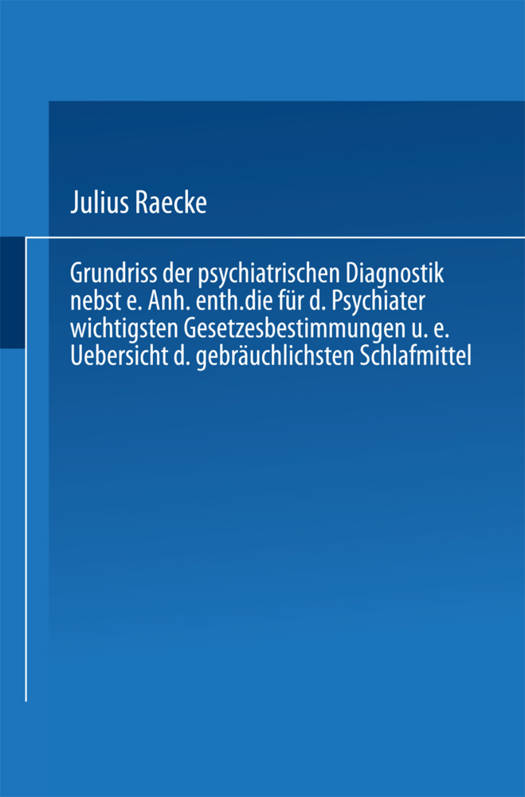 Grundriss Der Psychiatrischen Diagnostik Nebst Einem Anhang Enthaltend Die Für Den Psychiater Wichtigsten Gesetzesbestimmungen Und Eine Uebersicht Der Gebräuchlichsten Schlafmittel