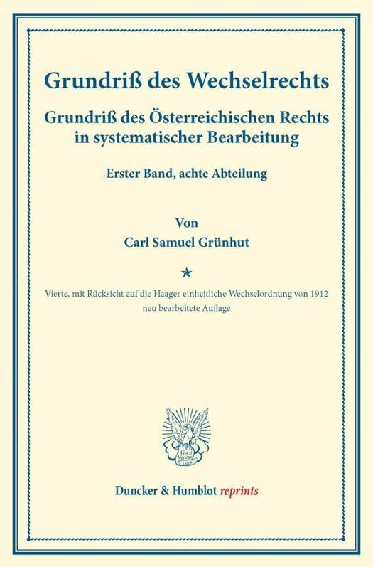 Im Rahmen des Projekts "Duncker & Humblot reprints" heben wir Schätze aus dem Programm der ersten rund 150 Jahre unserer Verlagsgeschichte, von der Gründung 1798 bis zum Ende des Zweiten Weltkriegs 1945. Lange vergriffene Klassiker und Fundstücke aus den Bereichen Rechts- und Staatswissenschaften, Wirtschafts- und Sozialwissenschaften, Geschichte, Philosophie und Literaturwissenschaft werden nach langer Zeit wieder verfügbar gemacht.