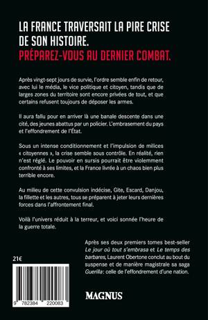 Après ses deux premiers tomes best-seller Le jour où tout s'embrasa et Le temps des barbares, Laurent Obertone poursuit son voyage au bout de l'enfer et conclut de manière magistrale sa saga Guerilla : celle de l'effondrement d'une nation.