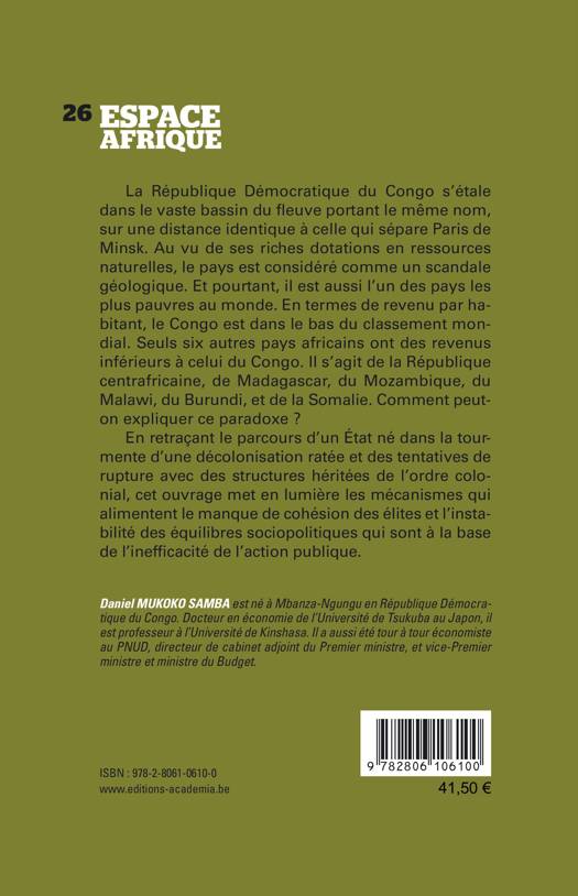 De la période de l'exploitation primitive par Léopold II à la colonisation par la Belgique, de la désintégration de l'État au lendemain de l'indépendance à l'échec des plans ambitieux de Mobutu, puis des deux grandes guerres sous Kabila père et Kabila fils à la tentative de création d'un nouvel État, ce livre analyse les facteurs explicatifs du contraste au Congo entre les riches dotations en ressources et l'étendue de la pauvreté humaine. L'ouvrage met en évidence le mal zaïrois, cette forme d'incapacité innée de l'État congolais à mettre en oeuvre les politiques publiques annoncées.