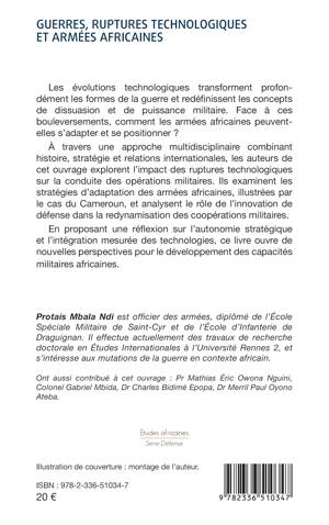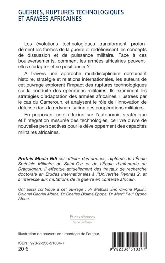 Les évolutions technologiques transforment profondément les formes de la guerre et redéfinissent les concepts de dissuasion et de puissance militaire. Face à ces bouleversements, comment les armées africaines peuvent-elles s'adapter et se positionner ? À travers une approche multidisciplinaire combinant histoire, stratégie et relations internationales, les auteurs de cet ouvrage explorent l'impact des ruptures technologiques sur la conduite des opérations militaires. Ils examinent les stratégies d'adaptation des armées africaines, illustrées par le cas du Cameroun, et analysent le rôle de l'innovation de défense dans la redynamisation des coopérations militaires. En proposant une réflexion sur l'autonomie stratégique et l'intégration mesurée des technologies, ce livre ouvre de nouvelles perspectives pour le développement des capacités militaires africaines.