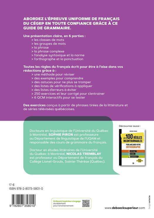 ABORDEZ L’ÉPREUVE UNIFORME DE FRANÇAIS DU CÉGEP EN TOUTE CONFIANCE GRÂCE À CE GUIDE DE GRAMMAIRE.