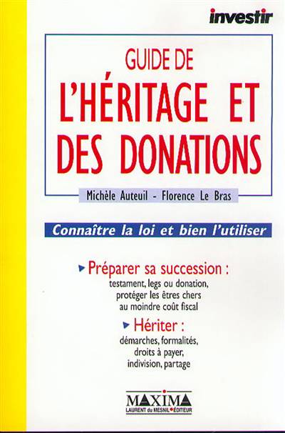 Parce qu'il vous donne toutes les informations légales nécessaires, sans jargon inutile, et qu'il vous apporte de nombreux conseils à partir d'exemples réels et récents, Le Guide Investir de l'héritage et des donations vous aidera à faire les choix les plus judicieux en fonction de votre situation personnelle.