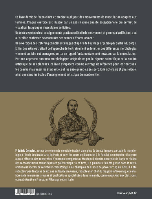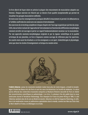 Des exercices de stretching complètent chaque chapitre de l’ouvrage organisé par parties du corps. Enfin, des articles traitant de l’approche de l’entraînement en fonction des différentes morphologies viennent enrichir cet ouvrage et porter un regard fondamentalement novateur sur la musculation. Par son approche anatomo-morphologique originale et par la rigueur scientifique et la qualité artistique de ses planches, ce livre s’imposera comme ouvrage de référence pour les sportives, les coachs mais aussi les étudiant.e.s et les enseignant.e.s en sport, kinésithérapie et physiologie, ainsi que dans les écoles d’enseignement artistique du monde entier.