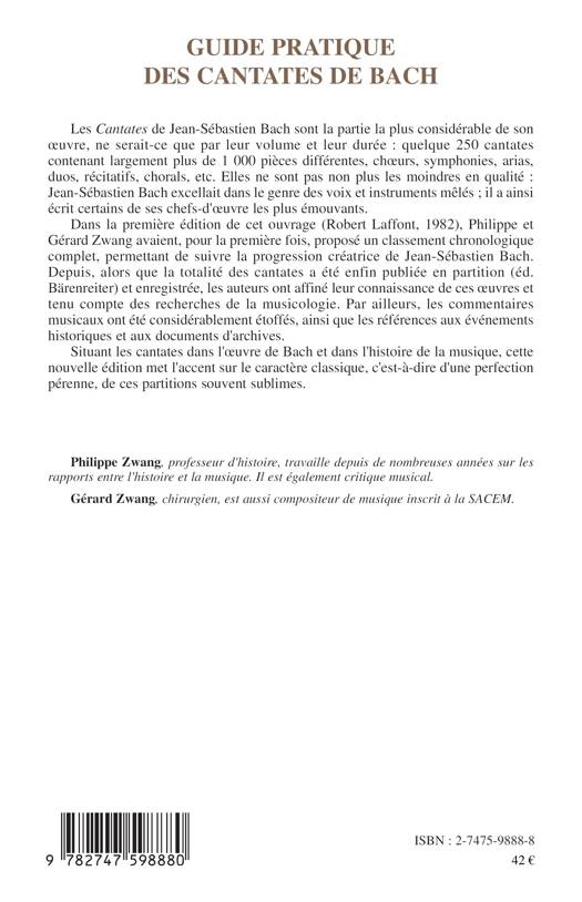Les Cantates de Jean-Sébastien Bach sont la partie la plus considérable de son oeuvre, ne serait-ce que par leur volume et leur durée. Elles ne sont pas non plus les moindres en qualité: Bach excellait dans le genre des voix et instruments mêlés ; il a ainsi écrit certains de ses chefs-d'oeuvre les plus émouvants. Situant les cantates dans l'oeuvre de Bach et dans l'histoire de la musique, cette nouvelle édition met l'accent sur le caractère classique, c'est-à-dire d'une perfection pérenne, de ces partitions souvent sublimes.