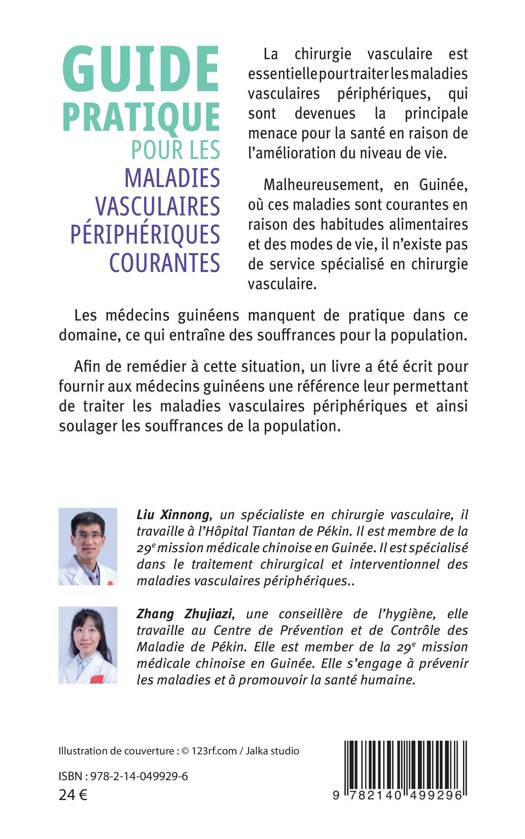 La chirurgie vasculaire est essentielle pour traiter les maladies vasculaires périphériques, qui sont devenues la principale menace pour la santé en raison de l'amélioration du niveau de vie. Malheureusement, en Guinée, où ces maladies sont courantes en raison des habitudes alimentaires et des modes de vie, il n'existe pas de service spécialisé en chirurgie vasculaire. Les médecins guinéens manquent de pratique dans ce domaine, ce qui entraîne des souffrances pour la population. Afin de remédier à cette situation, un livre a été écrit pour fournir aux médecins guinéens une référence leur permettant de traiter les maladies vasculaires périphériques et ainsi soulager les souffrances de la population.
