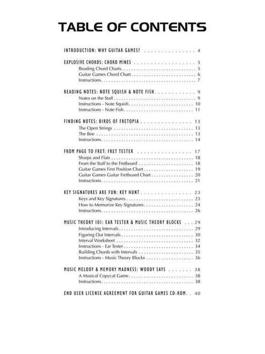 (Guitar Educational). Any new skill is easier to acquire when the task of learning is made fun. Why shouldn't the same hold true for learning the guitar? In Guitar Games, you'll be developing the same skills and knowledge you would by taking lessons, but you'll be thoroughly enjoying yourself in the process with fun, clever computer games that keep you motivated to do more. Aside from guitar-specific skills, such as chord fingerings, notes on the fretboard, etc., you'll also spend time on important music theory concepts and the often-overlooked subject of ear training. With Guitar Games, learning the guitar (and music in general) isn't something you'll have to convince yourself to do you'll look forward to each and every practice session. Just pop the CD-ROM into your Mac or PC, and you're on your way! Guitar Games covers topics such as: notes on the fretboard and staff, chord shapes, key signatures and scales, ear training with intervals and chords, music theory and building chords/scales, musical theory, and more.