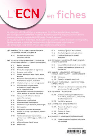 La collection l'ECN en fiches propose pour les différentes disciplines médicales des ouvrages concis contenant l'essentiel des connaissances à acquérir pour une bonne pratique et la réussite de l'Examen Classant National.