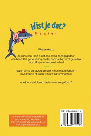 Wist je dat... de kans heel klein is dat een mens doodgaat door een haai? Dat gebeurt nog eerder doordat hij wordt getroffen door bliksem of verdrinkt in bad. haaien soms de raarste dingen in hun maag hebben? Bijvoorbeeld stukken van een schommelstoel. er elk uur elfduizend haaien worden gedood?
