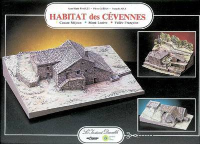 Maquette de trois types d'habitation du parc national des Cévennes, la maison de bergers sur le calcaire des Causses, la ferme dans les schistes de la Vallée Française, l'étable d'élevage sur les granits du mont Lozère (1/130).