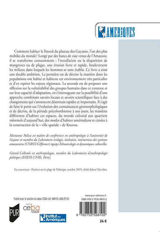Comment habiter le littoral du plateau des Guyanes, l’un des plus mobiles du monde ? Longé par des bancs de vase venus de l’Amazone, il se transforme constamment : l’installation ou la disparition de mangroves ou de plages, une érosion forte et rapide, bouleversent les milieux dans lesquels les hommes se sont établis. Ce livre a ainsi une double ambition. La première est de décrire la manière dont les populations ont habité et habitent cet environnement très particulier et d’en repérer les enjeux régionaux. La seconde est de proposer une réflexion sur la vulnérabilité des groupes humains dans ce contexte et sur leur capacité d’adaptation, en s’interrogeant sur la possibilité d’une approche combinant savoirs locaux et savoirs scientifiques face à des changements qui s’annoncent désormais rapides et importants. Il s’agit de faire le point sur l’évolution des connaissances géomorphologiques et de décrire, de la période précolombienne à nos jours, les manières différentes d’habiter ces espaces, du monde colonial aux quartiers informels d’aujourd’hui, des modes d’habiter amérindiens et créoles à la construction de la « ville spatiale » de Kourou.