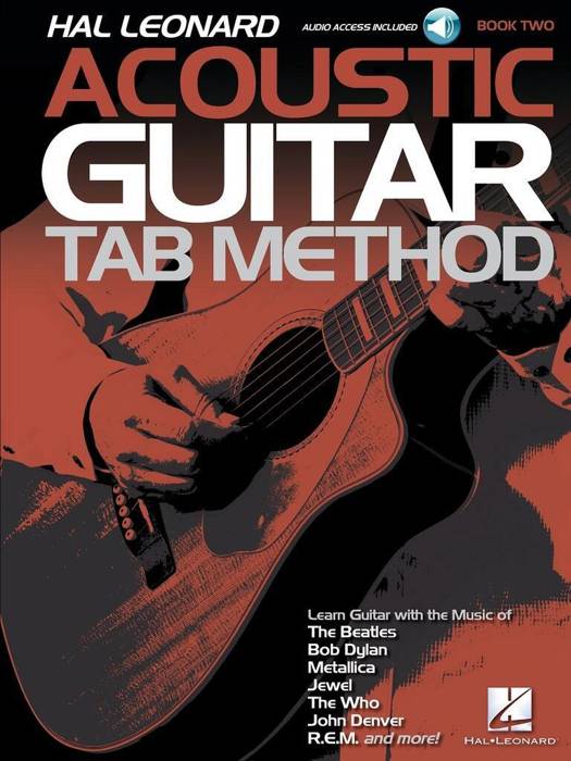 (Guitar Tab Method). This is the acoustic guitar method students and teachers have been waiting for. Learn strumming patterns with songs like "Across the Universe" and "Crazy on You," fingerpicking with artists like Jewel and Metallica, riffs and licks with classics by Red Hot Chili Peppers and Tom Petty, and much more. The method's unique, well-paced, and logical teaching sequence will get students playing more easily than ever before, and music from popular artists like the Rolling Stones, Rush, and John Denver will keep them playing and having fun. Book Two also includes: easy-to-follow tablature; fingerpicking; sixteenth notes; triplets; major scale; basic music theory; the minor pentatonic scale; add and sus chords; lead licks; Travis picking; 6/8 time; using a capo; and more! Also includes nearly 80 riffs and songs with online audio demos of every example.