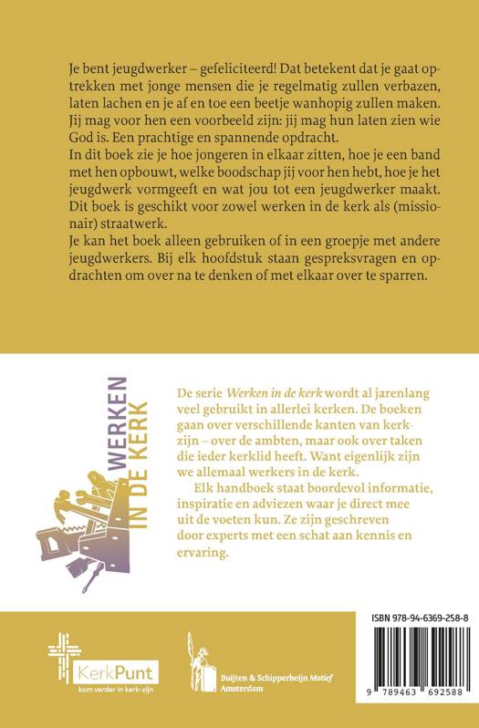 Je bent jeugdwerker – gefeliciteerd! Dat betekent dat je gaat optrekken met jonge mensen die je regelmatig zullen verbazen, laten lachen en je af en toe een beetje wanhopig zullen maken. Jij mag voor hen een voorbeeld zijn: jij mag hun laten zien wie God is. Een prachtige en spannende opdracht. In dit boek zie je hoe jongeren in elkaar zitten, hoe je een band met hen opbouwt, welke boodschap jij voor hen hebt, hoe je het jeugdwerk vormgeeft en wat jou tot een jeugdwerker maakt. Dit boek is geschikt voor zowel werken in de kerk als (missionair) straatwerk. Je kan het boek alleen gebruiken of in een groepje met andere jeugdwerkers. Bij elk hoofdstuk staan gespreksvragen en opdrachten om over na te denken of met elkaar over te sparren.