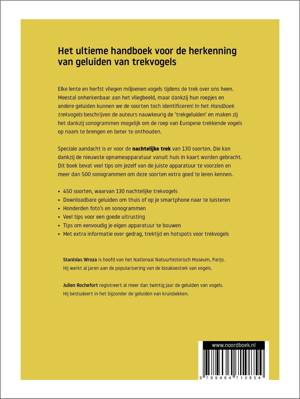 Elke lente en herfst vliegen miljoenen vogels tijdens de trek over ons heen. Meestal onherkenbaar aan het vliegbeeld, maar dankzij hun roepjes en andere geluiden kunnen we de soorten toch identificeren! In het Handboek trekvogels beschrijven de auteurs nauwkeurig de ‘trekgeluiden’ en maken zij het dankzij sonogrammen mogelijk om de roep van Europese trekkende vogels op naam te brengen en beter te onthouden.