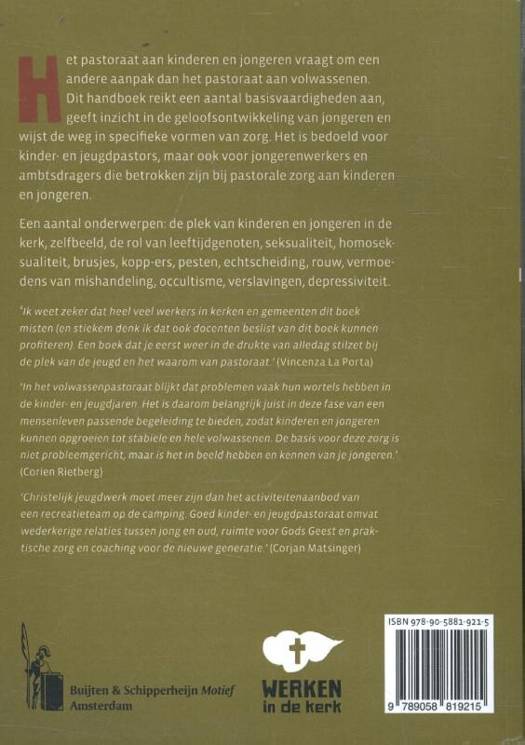 Jongeren en ouderen verschillen nogal van elkaar. Jongerenpastoraat vraagt dan ook om een andere aanpak dan het pastoraat aan volwassenen. Dit boek legt een fundament onder jeugdpastoraat, reikt een aantal basisvaardigheden aan, geeft inzicht in de geloofsontwikkeling van jongeren en wijst de weg in specifieke vormen van zorg. Immers, binnen het jeugdwerk loop je ook tegen moeilijke zaken aan. Een kind met problemen thuis, een tiener die het niet meer ziet zitten... Hoe ga je daarmee om? Dit handboek is bedoeld voor kinder- en jeugdpastors, maar ook heel geschikt voor jongerenwerkers die zich pastoraal willen laten toerusten en predikanten en ouderlingen die zijn betrokken bij pastorale zorg aan kinderen/jongeren. (3e, uitgebreide druk)