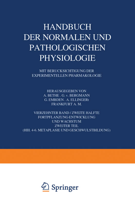 14. Band/Zweite Hälfte Mit Berücksichtigung Der Experimentellen Pharmakologie Vierzehnter Band / Zweite Hälfte Zweiter Teil (H/II. 4-6. Metalplasie Und Geschwulstbildung)