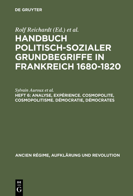 7. Handbuch politisch-sozialer Grundbegriffe in Frankreich 1680-1820, Heft 6, Analyse, Expérience. Cosmopolite, Cosmopolitisme. Démocratie, Démocrates