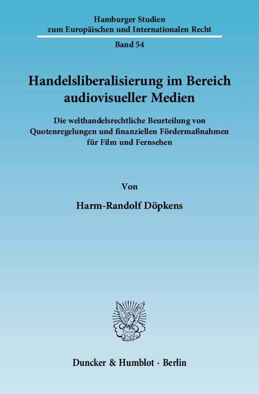 Für die USA ist die Film- und Fernsehindustrie eine der wichtigsten Exportindustrien. Sie dringen daher auf eine möglichst weitgehende Liberalisierung der internationalen Märkte für audiovisuelle Produkte. Die europäischen Staaten versuchen hingegen aus wirtschaftlichen und kulturellen Erwägungen, dieser faktischen Dominanz der US-amerikanischen Film- und Fernsehindustrie durch Fördermaßnahmen für die einheimische Produktion zumindest teilweise entgegenzuwirken. Der daraus entstehende Interessengegensatz hätte 1993 unter großem Medienecho beinahe zu einem Scheitern der Verhandlungen der Uruguay-Runde geführt, das nur durch ein formales "agreement to disagree" abgewendet werden konnte. Die Rechtslage ist seither ungeklärt. Eine nähere Untersuchung zeigt, dass die Europäische Gemeinschaft ihr Ziel, die welthandelsrechtliche Zulässigkeit der europäischen Fördermaßnahmen für Film- und Fernsehen umfassend abzusichern, nicht erreichen konnte.
