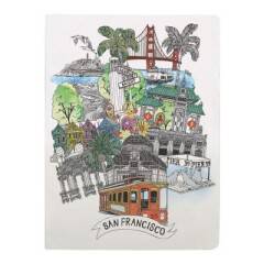 The San Francisco Handmade Silkscreened Journal from Galison features charming illustrations of the city's famous landmarks. The perfect gift for travelers, this journal has 100 rounded-corner pages, a secure saddle stitch binding, and a silkscreened cover.