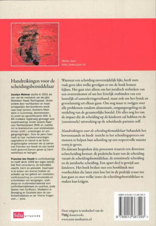 Handvatten voor de scheidingsbemiddelaar beschrijft in vier hoofdstukken een doorsnee scheiding en nemen de auteurs een drietal processen onder de loep: de praktische kant vanuit de scheidingsbemiddelaar, de emotionele scheiding en de juridische scheiding. Aan het eind van elk hoofdstuk wordt een samenvatting of herhaling van de belangrijkste onderwerpen gegeven.