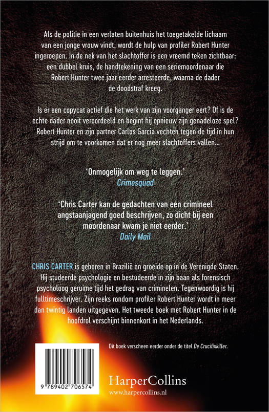 Maak kennis met profiler Robert Hunter in Handtekening van het kwaad van bestsellerauteur Chris Carter. Elk boek in de Robert Hunter-serie kan worden gelezen als een standalone. Als de politie in een verlaten buitenhuis het toegetakelde lichaam van een jonge vrouw vindt, wordt de hulp van profiler Robert Hunter ingeroepen. In de nek van het slachtoffer is een vreemd teken zichtbaar: een dubbel kruis, de handtekening van een seriemoordenaar die Robert Hunter twee jaar eerder arresteerde, waarna de dader de doodstraf kreeg. Is er een copycat actief die het werk van zijn voorganger eert? Of is de echte dader nooit veroordeeld en begint hij opnieuw zijn genadeloze spel? Robert Hunter en zijn partner Carlos Garcia vechten tegen de tijd in hun strijd om te voorkomen dat er nog meer slachtoffers vallen…