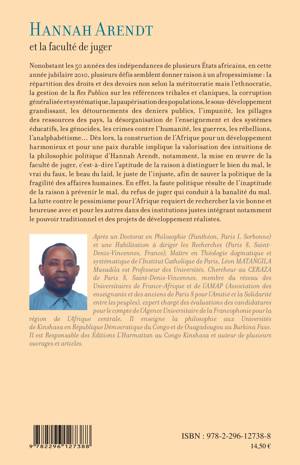 En cette année jubilaire 2010, plusieurs défis semblent donner raison à un afropessimisme : la répartition des droits et des devoirs non selon la méritocratie mais l'ethnocratie, la gestion de la Res Publica sur les références tribales et claniques, la corruption généralisée systématique... La construction de l'Afrique pour un développement harmonieux et pour une paix durable implique la valorisation des intuitions de la philosophie politique d'Hannah Arendt, notamment la mise en œuvre de la faculté de juger.