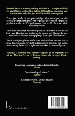 Zeven jaar zijn verstreken sinds de beruchtste seriemoordenaar aller tijden - dr. Hannibal Lecter - spoorloos verdween. Hij waart nog steeds rond, genietend van de smaken en geuren van een weinig behoedzame wereld. Maar FBI-agente Clarice Starling is hun ontmoetingen nog lang niet vergeten; zijn raspende stem klinkt nog steeds in haar dromen. Ook Mason Verger herinnert zich dr. Lecter zeer goed: hij was zijn zesde slachtoffer. De schatrijke Verger is geobsedeerd door wraak. Vanuit zijn beademingsapparaat spint hij een wereldwijd web, maar om de doctor te vangen heeft hij een exquis en onschuldig ogend lokaas nodig: Clarice Starling. Krachtig, hypnotisch, volstrekt origineel - Hannibal is het magnum opus van een van de grootste levende thrillerauteurs. Wees voorbereid op een hellerit die een verhaal dat je dacht te kennen voorgoed verandert.