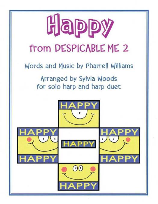 (Harp). Pharrell Williams' fun, upbeat 2014 hit song "Happy" is from the Despicable Me 2 soundtrack album. It has become one of the best-selling singles of all time. Sylvia Woods has arranged this happy piece for solo lever or pedal harp. It can be played by advanced beginner to intermediate players. Sylvia has also included a very easy harp duet arrangement. Harp Part 2 can be played by beginning students, and Harp Part 1 can be played by advanced beginners. You get BOTH the solo and the duet arrangement in this sheet music. SOLO: The harp solo is arranged for advanced beginner harp players. There are several sharping lever changes required, and you need to have levers on F, C, G, and D strings. The harp range needed is 24 strings from B up to D. If you have a 26-string harp with C as the bottom note, you can play this solo if you tune the bottom C string down to a B. Fingerings and lyrics are included. DUET: Both parts of the duet can be played by advanced beginner harpists. Fingerings and lyrics are included. Part 1 is the easier part, and could be played by some beginning students as well. It requires no sharping levers except for the F#s in the key signature. It can be played on a 26-string harp and requires 19 strings from E up to B. Part 2 of the duet is a bit more advanced than Part 1. Sharping levers are required on F, C, G, and D strings, and there are two lever changes within the piece. The harp range needed is 24 strings from B up to D. If you have a 26-string harp with C as the bottom note, you can play this part if you tune the bottom C string down to a B. The harp solo can be played along with both parts of the duet if you have a larger ensemble with more advanced players. Due to copyright restrictions, each player must purchase their own copy of this music. Thank you for your cooperation. Add this fun piece to your repertoire and both you and your audiences will be very HAPPY!