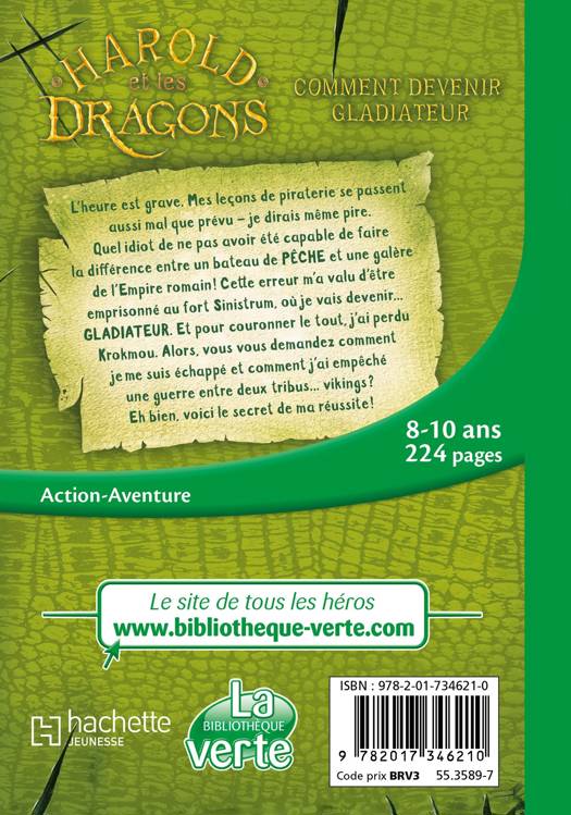 L’heure est grave. Mes leçons de piraterie se passent aussi mal que prévu – je dirais même pire. Quel idiot de ne pas avoir été capable de faire la différence entre un bateau de PÊCHE et une galère de l’Empire romain ! Cette erreur m’a valu d’être emprisonné au fort Sinistrum, où je vais devenir... GLADIATEUR. Et pour couronner le tout, j’ai perdu Krokmou. Alors, vous vous demandez comment je me suis échappé et comment j ’ai empêché une guerre entre deux tribus... vikings ? Eh bien, voici le secret de ma réussite