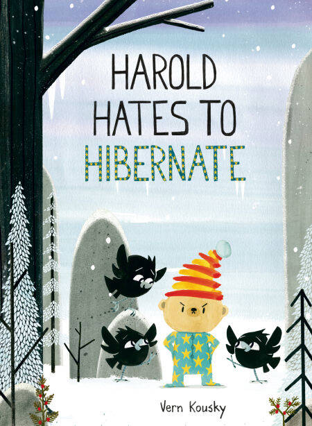 Harold is determined to stay awake. So, with help from his friends the crows, he tries everything—from filling his belly with delicious berries to wearing cozy pajamas to keep him warm. Finally, snow starts to fall, and Harold finds he needs to rest his eyes, just for a minute. When he finally dozes off, the crows return—with his woolly hat—to snuggle up for some winter rest.
