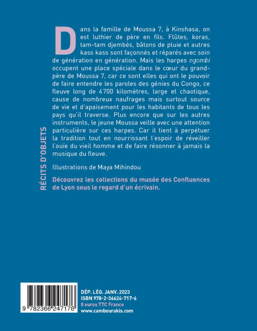 Dans la famille de Moussa 7, à Kinshasa, on est luthier de père en fils. Flûtes, koras, tam-tam djembés, bâtons de pluie et autres kass kass sont façonnés et réparés avec soin de génération en génération. Mais les harpes ngombi occupent une place spéciale dans le coeur du grand-père de Moussa 7, car ce sont elles qui ont le pouvoir de faire entendre les paroles des génies du Congo, ce fleuve long de 4 700 kilomètres, large et chaotique, cause de nombreux naufrages mais surtout source de vie et d'apaisement pour les habitants de tous les pays qu'il traverse. Plus encore que sur les autres instruments, le jeune Moussa veille avec une attention particulière sur ces harpes. Car il tient à perpétuer la tradition tout en nourrissant l'espoir de réveiller l'ouïe du vieil homme et de faire résonner à jamais la musique du fleuve.
