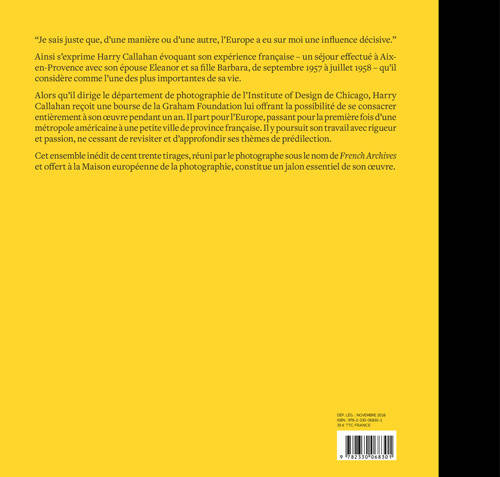 En 1956, le photographe Harry Callahan (1912-1999), alors directeur du département de photographie de l'Institute of Design de Chicago aux États-Unis, reçoit une bourse de la Fondation Graham. Sur les conseils d'Edward Steichen, il part en Europe et séjourne à Aix-en-Provence de septembre 1957 à juillet 1958 où il conçoit une série d'études sur les vues urbaines, la nature, et de nombreux portraits de sa femme Eleanor. Trente-six ans plus tard, découvrant le chantier de la Maison européenne de la photographie à Paris, Harry Callahan revisite ses archives, sélectionne cent trente tirages d'époque, sous le nom de "French Archives", et fait don de l'ensemble au nouveau musée.