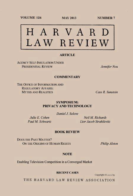 The Harvard Law Review is offered in a digital edition, featuring active Contents, linked notes, and proper ebook formatting. The contents of Issue 7 include a Symposium on privacy and several contributions from leading legal scholars: